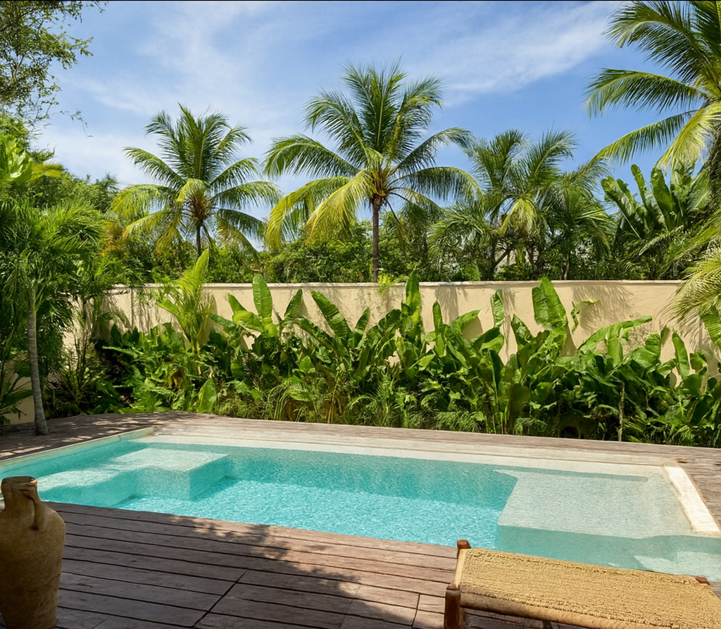 Step outside to your private pool framed by tropical greenery, where you can enjoy quiet mornings or refreshing evening dips. For guests who appreciate wellness, Casa Boa offers rare added perks: a private gym, a relaxing sauna, and an ice bath—ideal for recovery, routine, or simple indulgence.