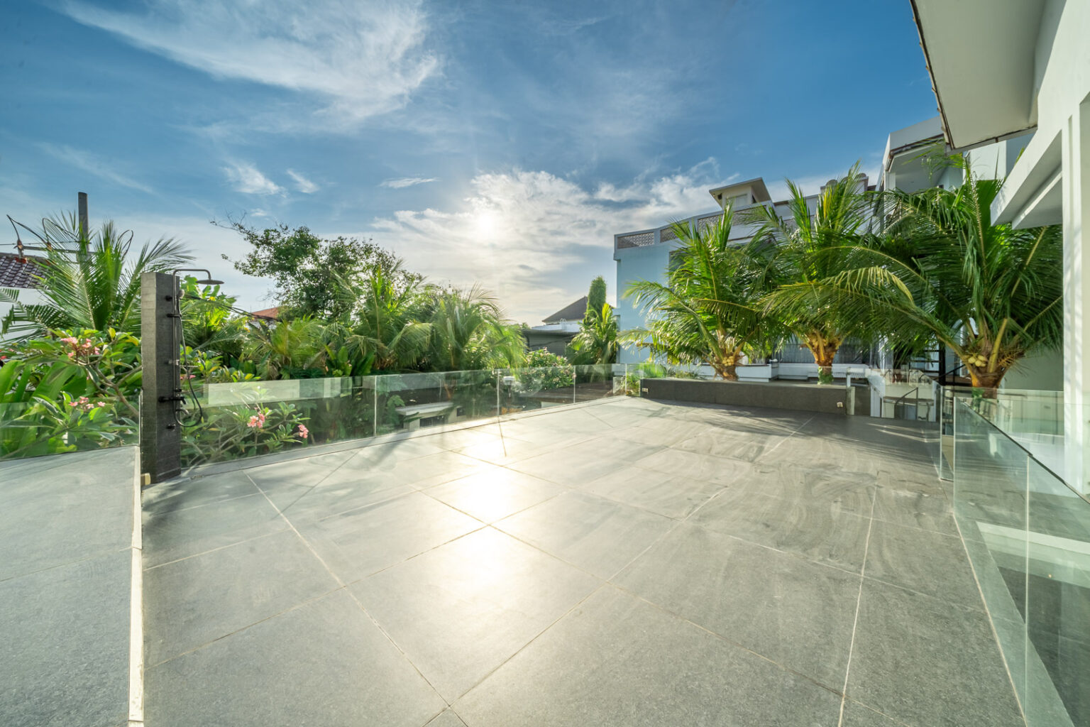On the upper floor, a spacious open terrace offers a versatile outdoor area — ideal for BBQ gatherings, morning yoga, or simply relaxing under the Bali sun. Complete with a fully equipped kitchen, dining area, fast Wi-Fi, and Smart TV, Villa Lima House is thoughtfully designed for comfort and style.