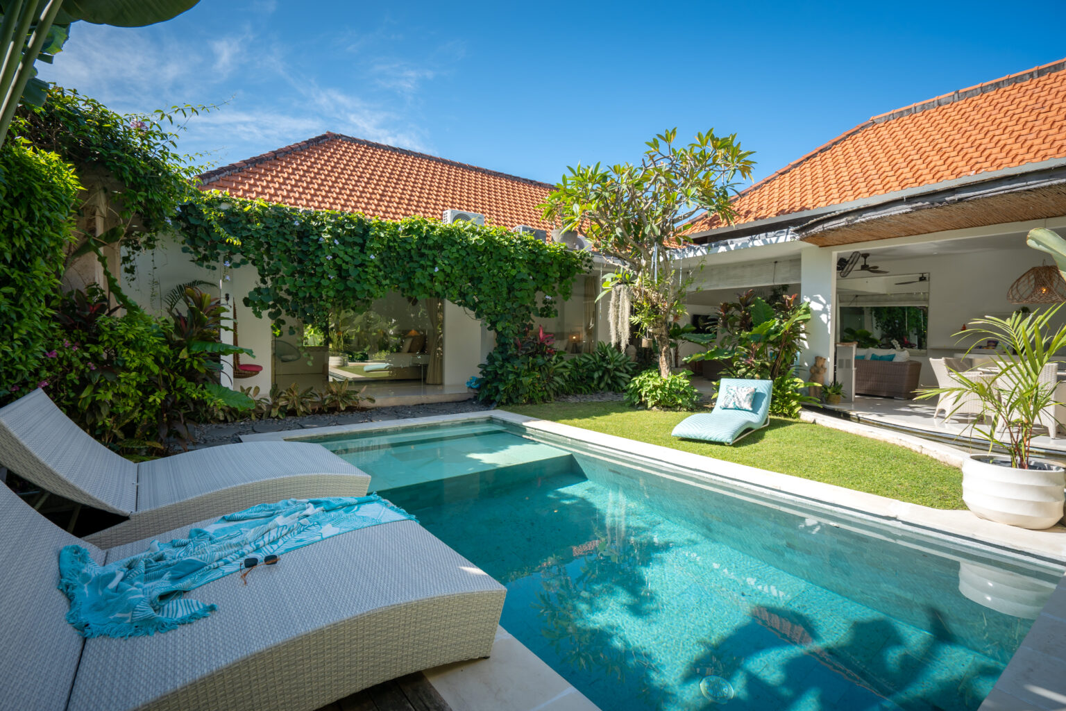 Start your morning with a dip in the pool surrounded by vibrant greenery, unwind in the hammock with a good book, or enjoy a cozy evening with friends in the open lounge. From trendy cafés to boutique shops and Seminyak’s famous dining scene, everything is just moments away — making this villa an ideal home base to Eat, Shop, and Play your way through Bali.
