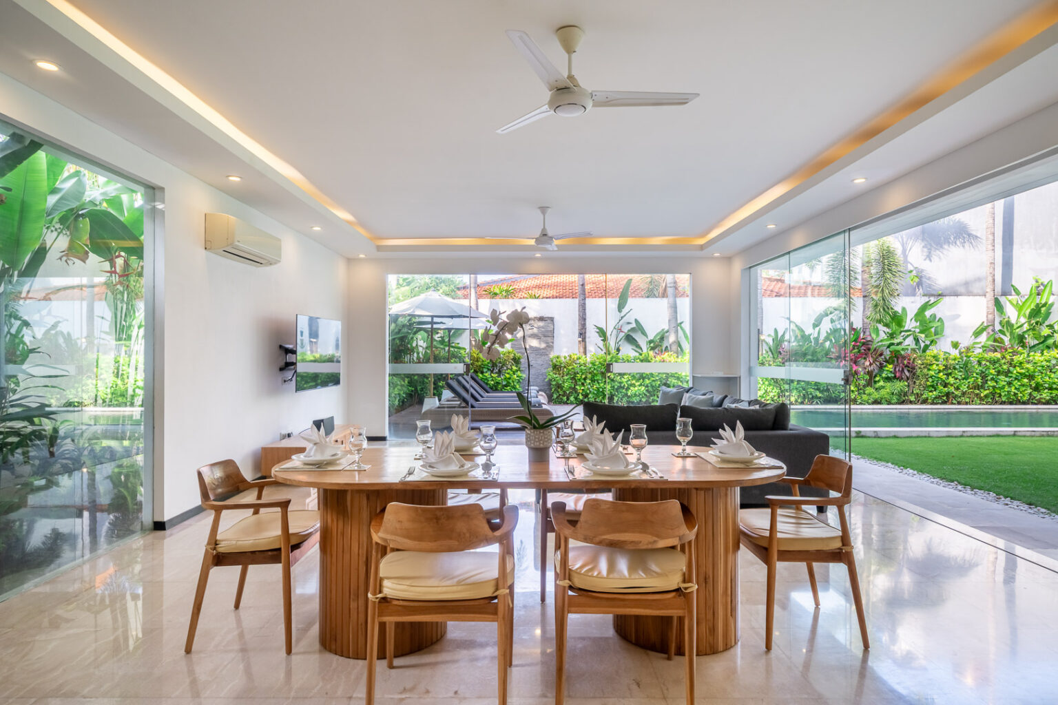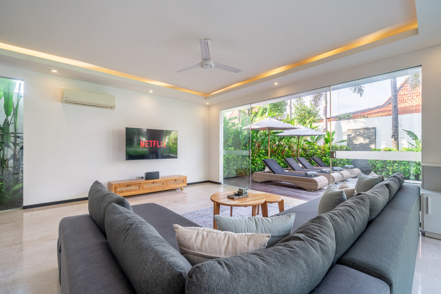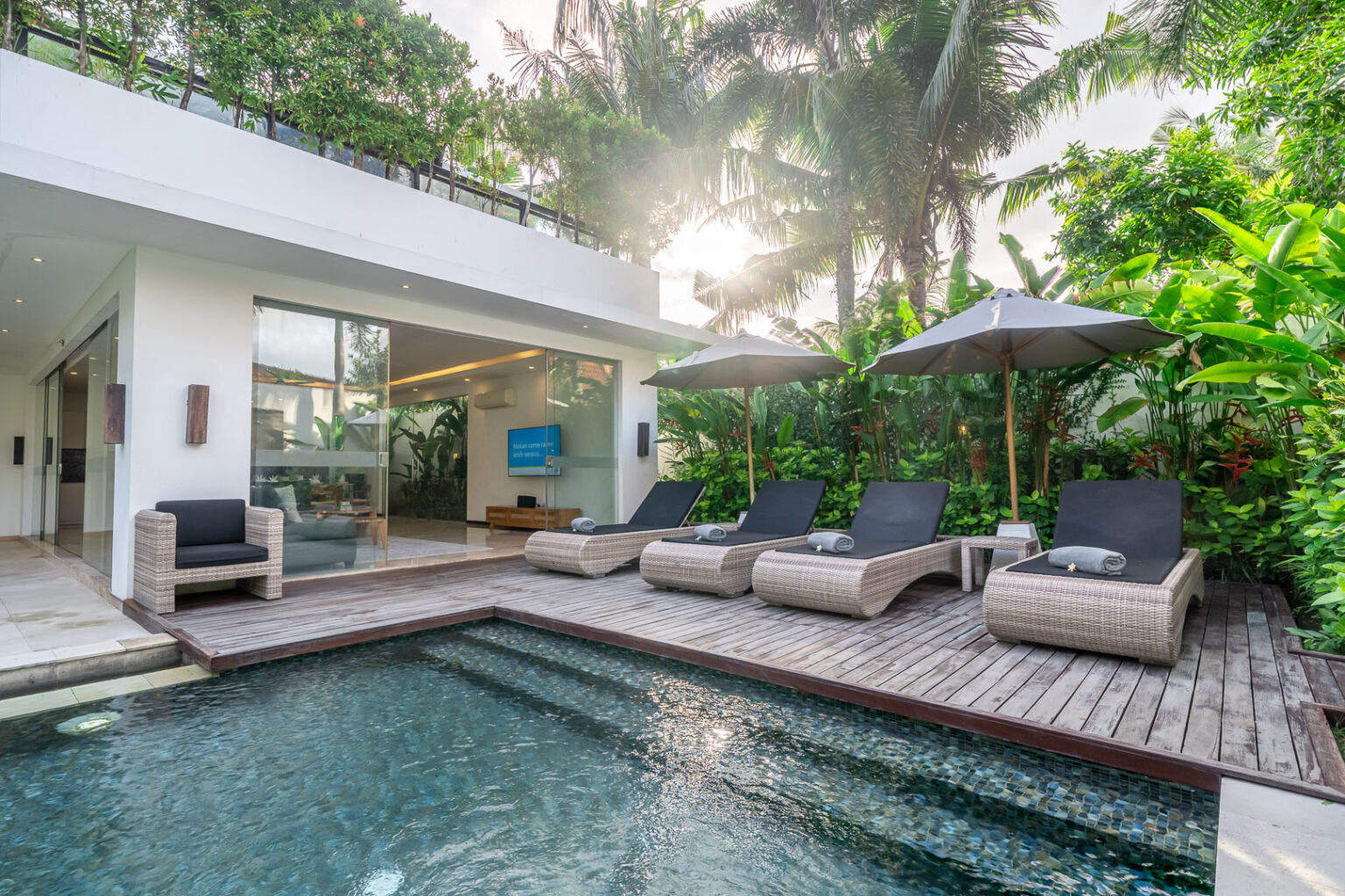 Villa Aquila represents the supreme in Villa accommodation. Ultimate luxury with minimalistic flair. Its 3 bedroom abode is on large allotment with 12.5 meter pool as its central point amidst its tropical oasis. 6 sun lounges so everyone has their own to enjoy the sun drenched garden. Location serves the purpose of easy walking to dining and shopping. Truly one of the most amazing 3 bedroom Villa that will not disappoint.