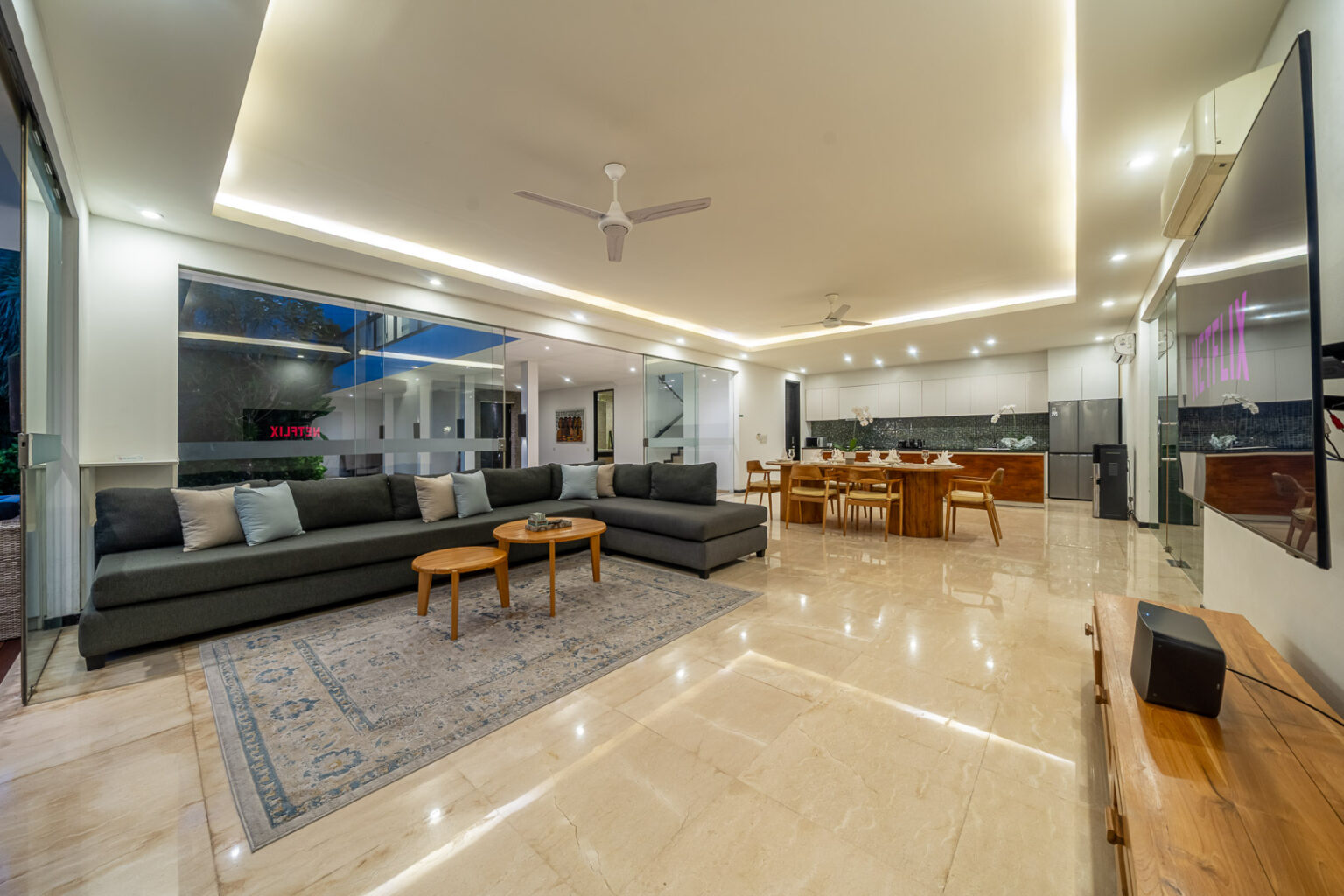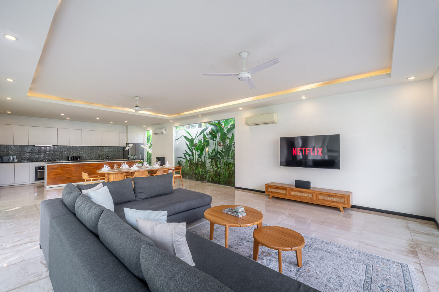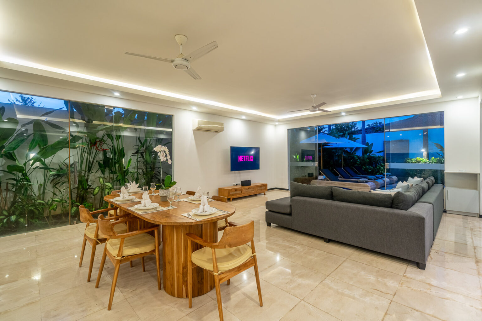 Villa Aquila represents the supreme in Villa accommodation. Ultimate luxury with minimalistic flair. Its 3 bedroom abode is on large allotment with 12.5 meter pool as its central point amidst its tropical oasis. 6 sun lounges so everyone has their own to enjoy the sun drenched garden. Location serves the purpose of easy walking to dining and shopping. Truly one of the most amazing 3 bedroom Villa that will not disappoint.